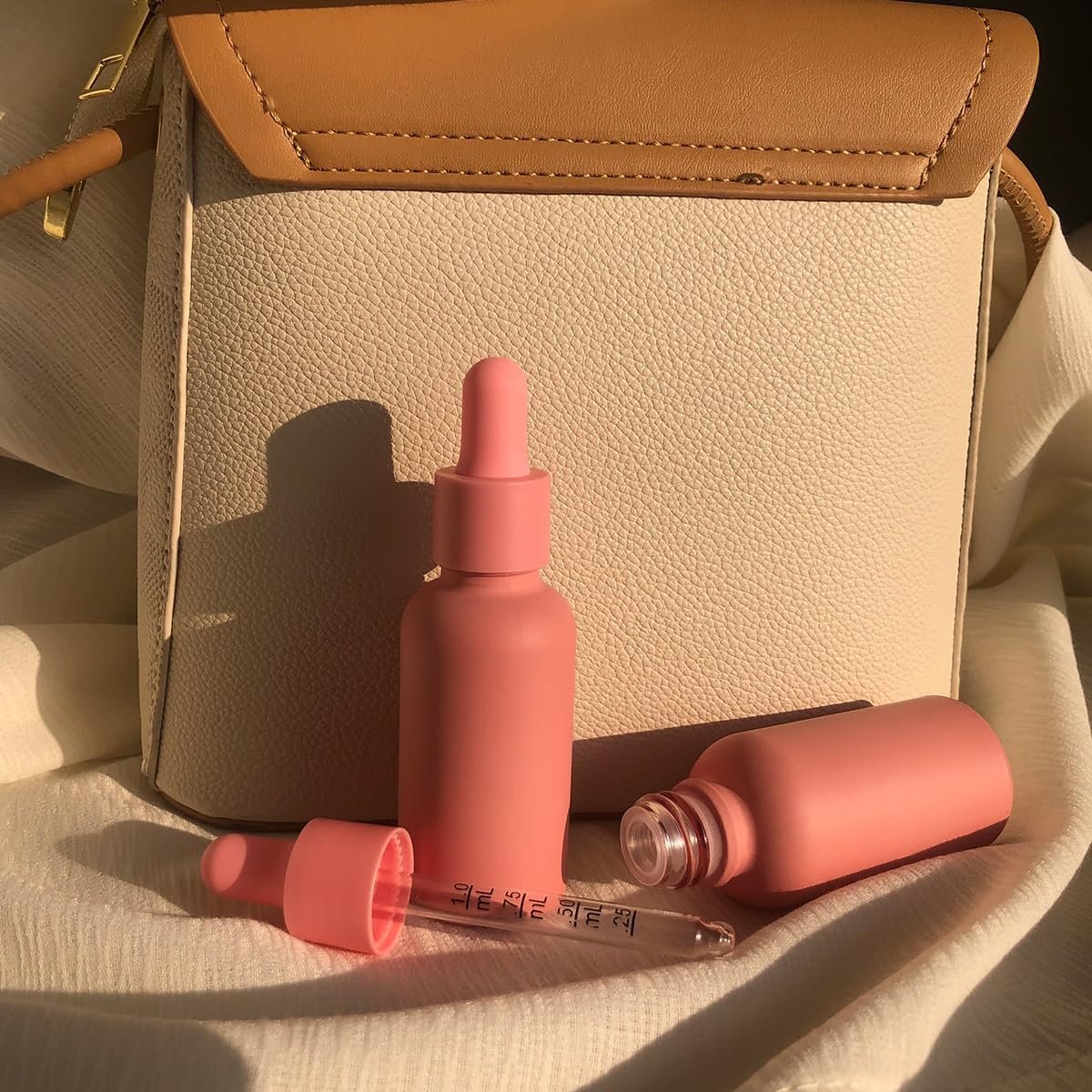 1oz Pink Coated Glass Dropper Bottles